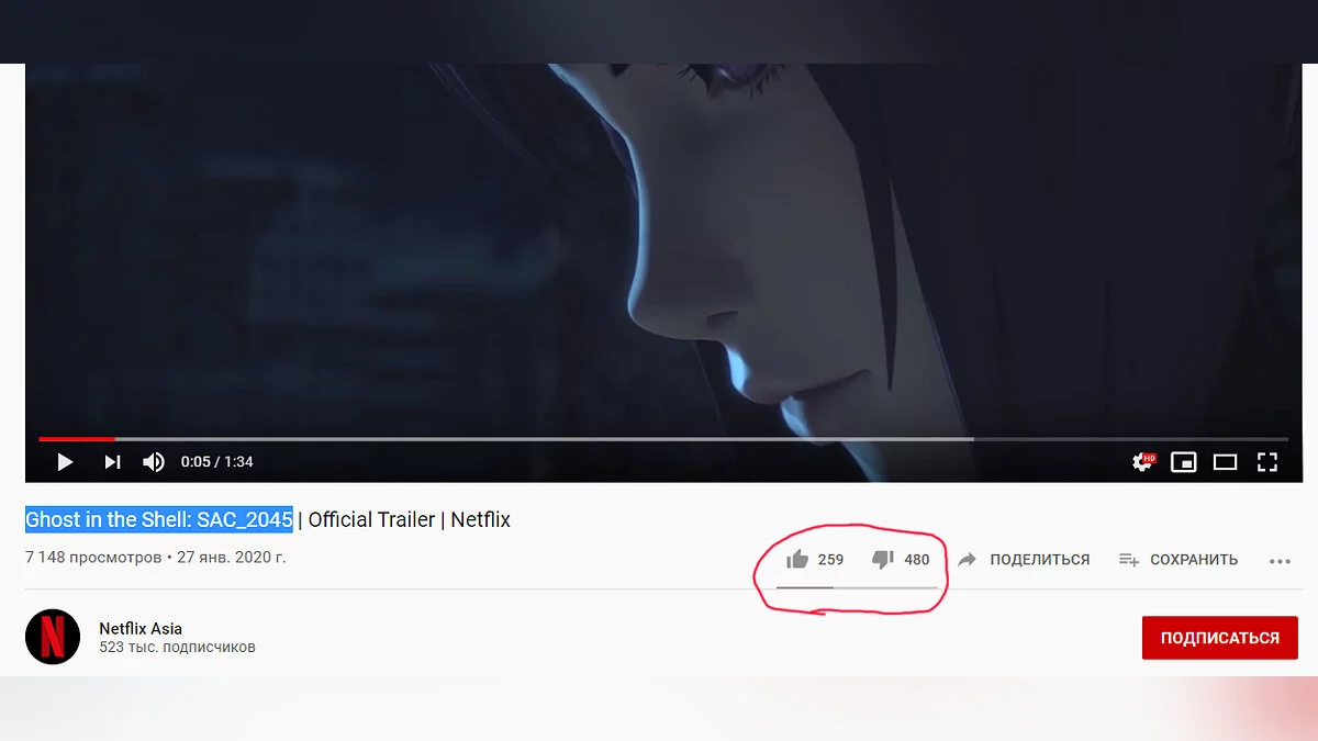 Netflix опубликовала трейлер предстоящего аниме-сериала Ghost in the Shell: SAC_2045 («Призрак в доспехах: Синдром одиночки 2045»). Стоит заметить, что уже в первые часы после публикации трейлер получил в основном негативные отзывы от зрителей.