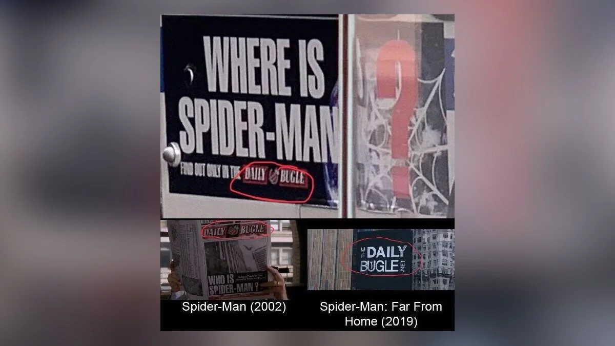 На баннере нанесен логотип газеты Daily Bugle того самого Джей Джона Джеймсона, которых был вечно недоволен работой Питера Паркера Тоби Магуайра (Tobey Maguire) в трилогии «Человека-паука» режиссера Сэма Рэйми (Sam Raimi).