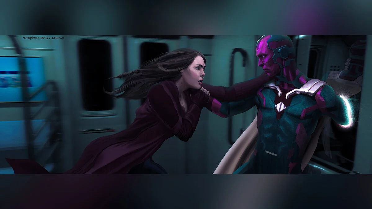 На последних двух концептах изображены Ванда, она же Алая ведьма, и Вижен в поезде. На одной из картинок Вижен как-будто проваливается сквозь стену вагона, пока его возлюбленная пытается его удержать.