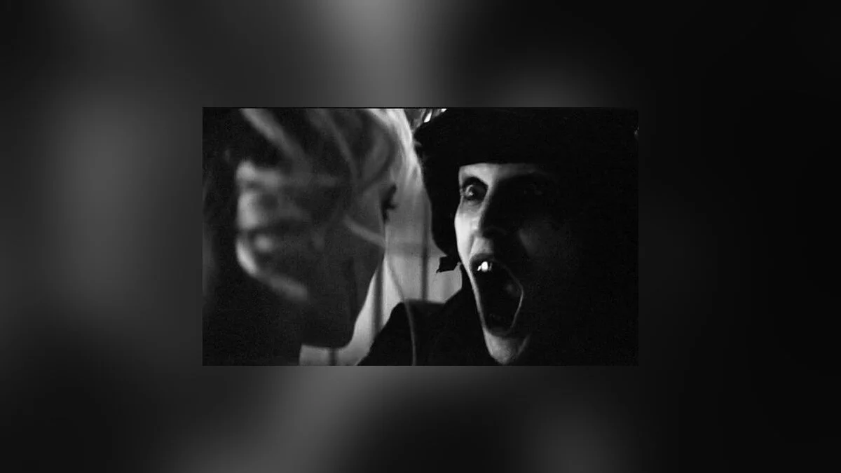 На кадре изображены Джокер и Харли Квинн. Джокер, по всей видимости, что-то выкрикивает.