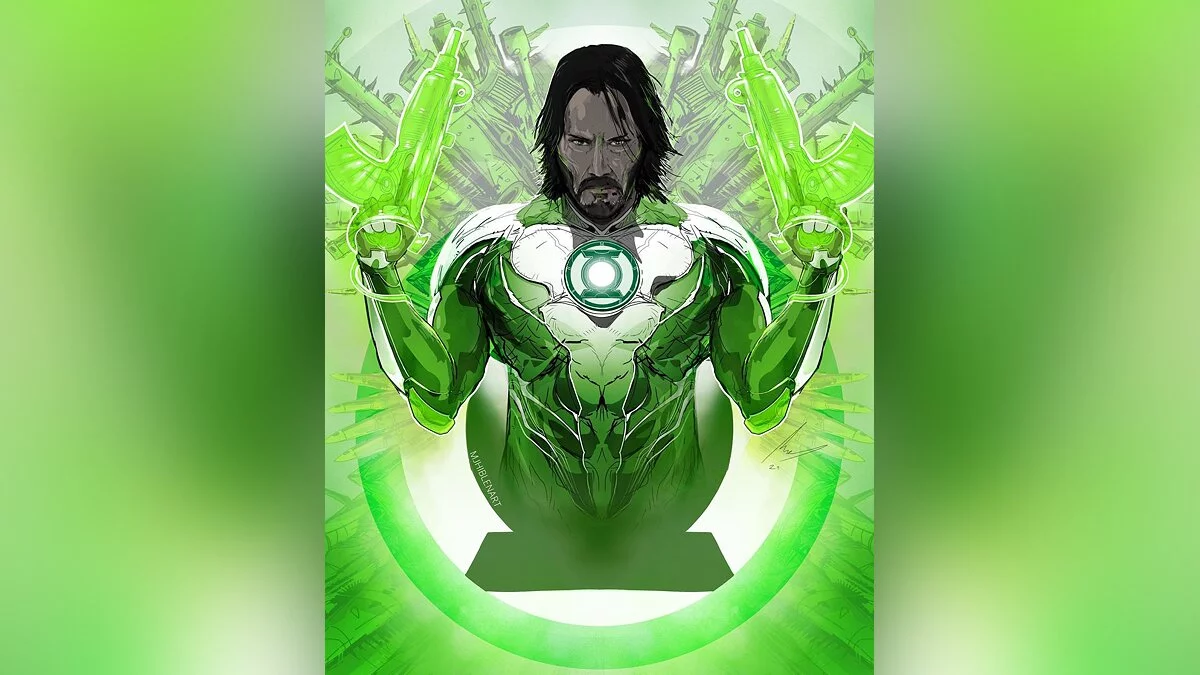 Художник показал Киану Ривза и Джона Уика в образе Зеленого фонаря