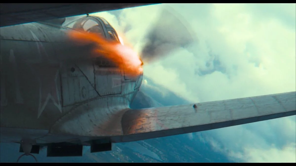 В этот момент картина просто поражает, ведь дуэль на истребителях выглядит действительно впечатляюще: напряжение просто зашкаливает, режиссура — на высоте, картинка — ошеломительна, а ещё и каждый манёвр даётся лётчикам лишь ценой невероятных усилий, и ты это чувствуешь через экран. В итоге сцена заставляет вжиматься в кресло и нервно болеть за советских солдат. В этот момент хочется заранее поставить фильму двенадцать из десяти — увы, после стартовой пятиминутки о подобном экшене придётся забыть вплоть до финала, который подарит ещё полдюжины восхитительных минут.