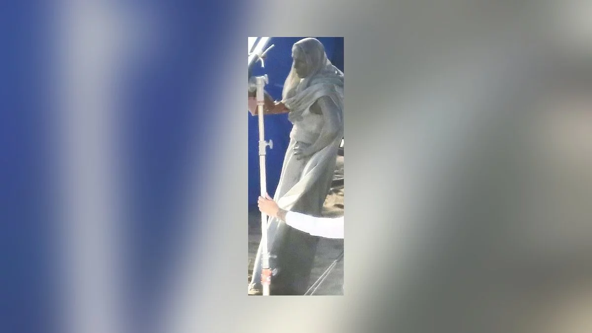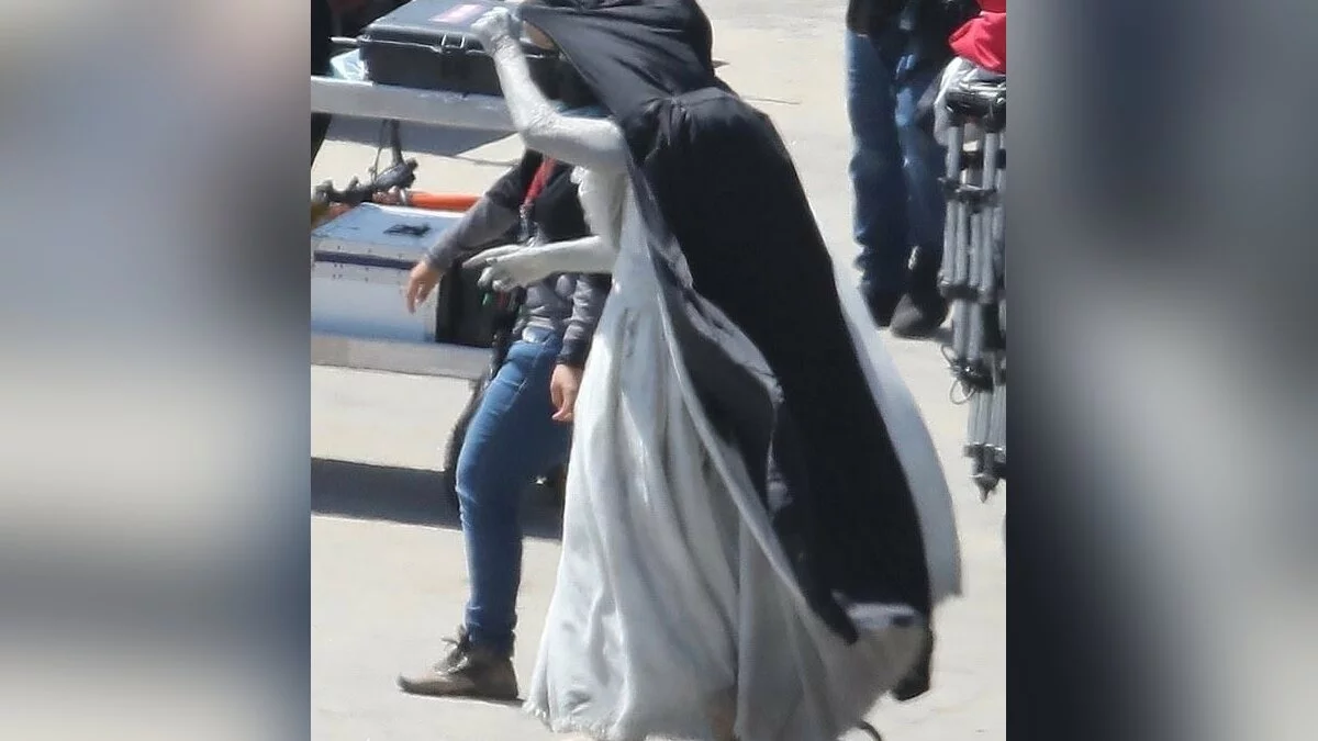 Кристиан Бейл одет в серый костюм. На одном из снимков его также можно увидеть в черной мантии, которую Горр Убийца богов носит в комиксах.