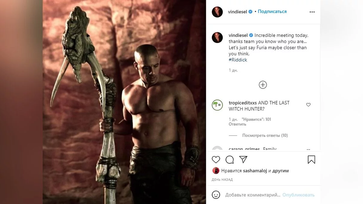 На этой неделе голливудский актёр Вин Дизель (Vin Diesel) опубликовал фотографию с тренировок для нового «Форсажа». Но, как оказалось, звезда готовит своё тело к ещё одному своему любимому герою — Риддику.