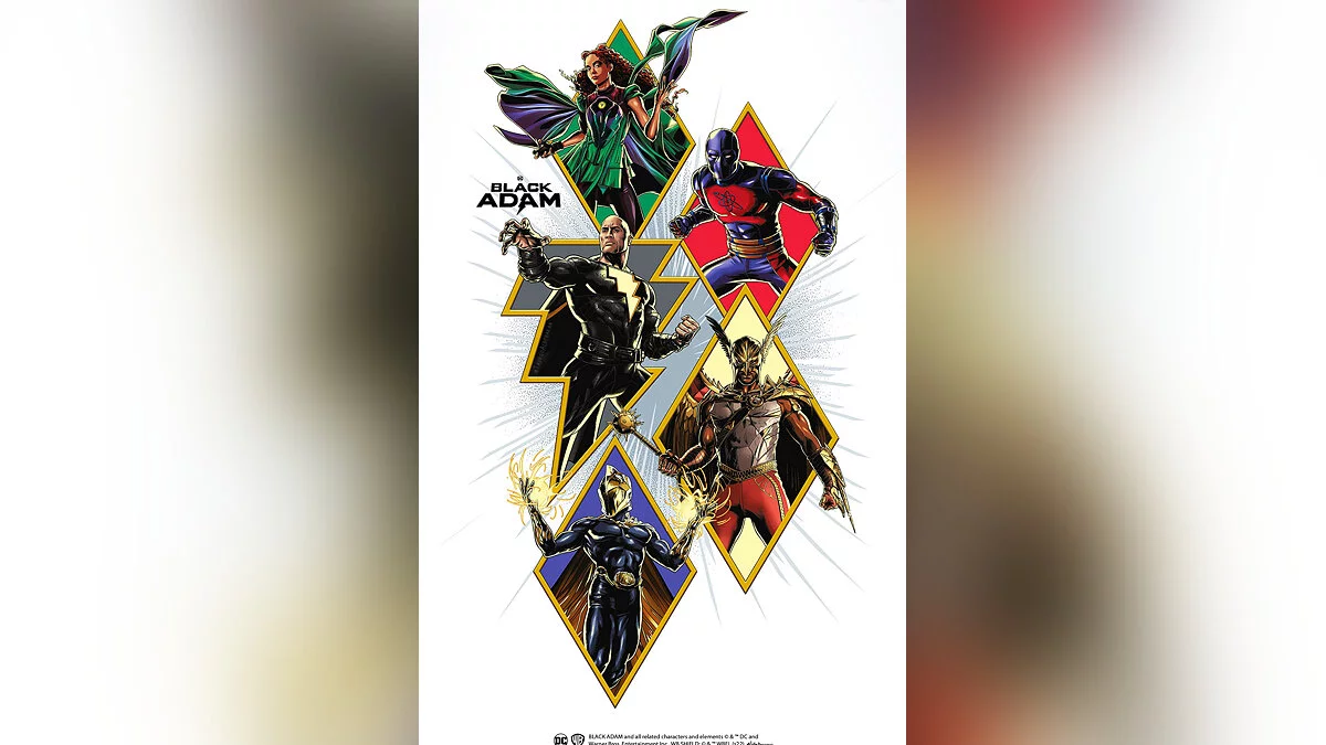 А еще в сети появились промо-постеры «Черного Адама», на которых можно увидеть и других персонажей этого фильма, включая Крушителя Атомов, Человека-ястреба, Доктора Фейта и Циклон.