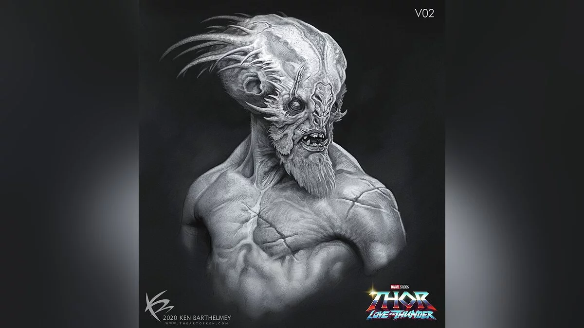 Концепт-художник Кен Бартелми (Ken Barthelmey), работавший над кинокомиксом «Тор: Любовь и гром» показал, как изначально задумывался образ Горра Убийцы богов еще до того, как Кристиан Бейл (Christian Bale) получил эту роль.