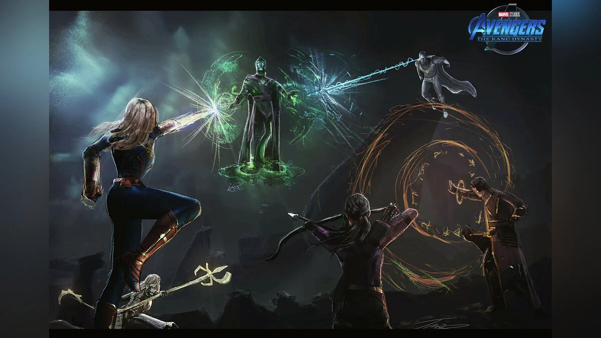 На изображении показано, как Мстители (Кейт Бишоп, Капитан Марвел, Белый Вижен, Тень и Вонг) сражаются с Кангом Завоевателем, который выступит главным злодеем фильма. Премьера намечена на 2 мая 2025 года. Режиссером станет Дестин Дэниел Креттон (Destin Daniel Cretton), снявший прошлогодний хит «Шан-Чи и легенда десяти колец».