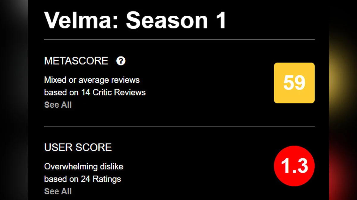 На момент написания новости, средняя оценка «Велмы» на iMDB составляет 2,5 балла. На Rotten Tomatoes и Metacritic ситуация аналогичная. Там пользовательский рейтинг составил 9% и 1,2 балла соответственно.