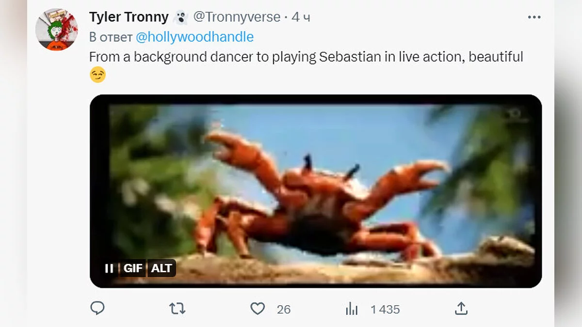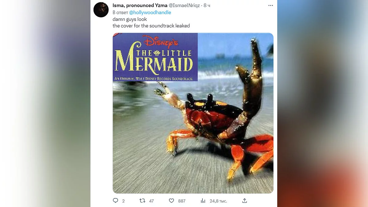 В интернете высмеяли внешний вид краба Себастьяна из фильма «Русалочка». Он сильно отличается от версии из мультика