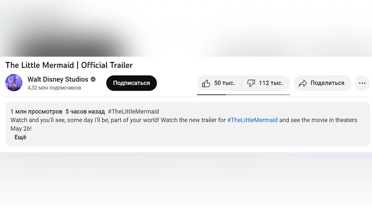 Компания Disney опубликовала новый трейлер предстоящей экранизации «Русалочки». Буквально в первые же часы после публикации пользователи начали резко занижать рейтинг видео.