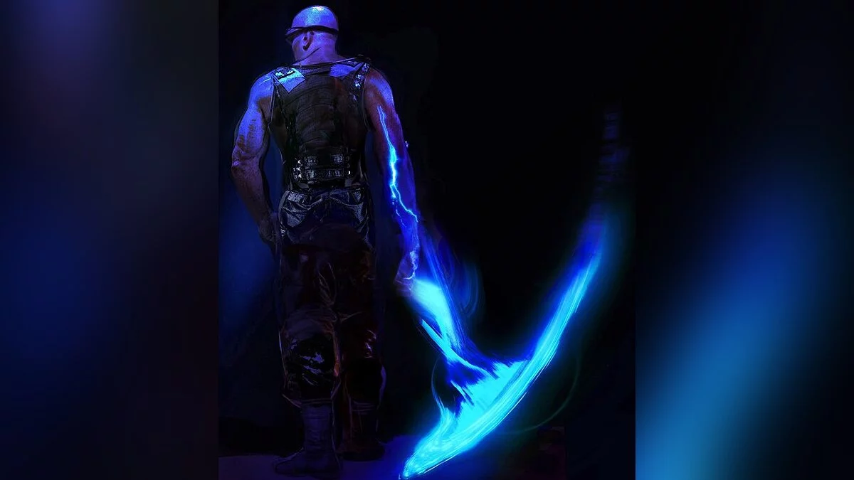 На концепт-арте правая рука Риддика испускает синий свет, символизирующий его могущественную силу.