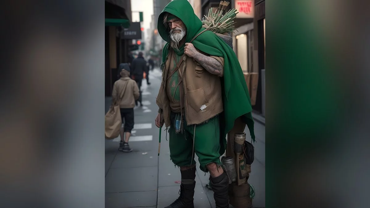 Пользователь с ником Oldschoolc1 решил узнать, что если бы популярные супергерои DC вдруг ушли бы на пенсию и стали бомжами. Для этого он попросил нейросеть Midjourney сгенерировать соответствующие изображения.