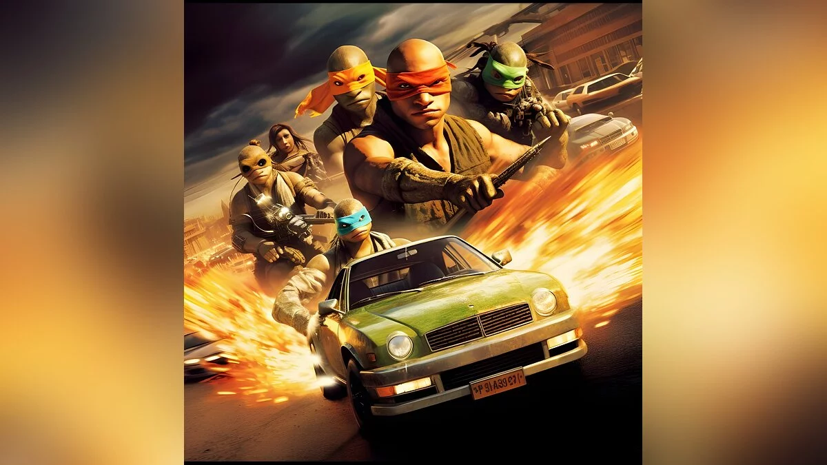 Энтузиаст с ником Left-Plant2717 решил объединить две популярные франшизы в одно целое. Пользователь попросил нейросеть Midjourney показать, каким был бы фильм «Форсаж», если бы главные роли исполнили Черепашки-ниндзя.