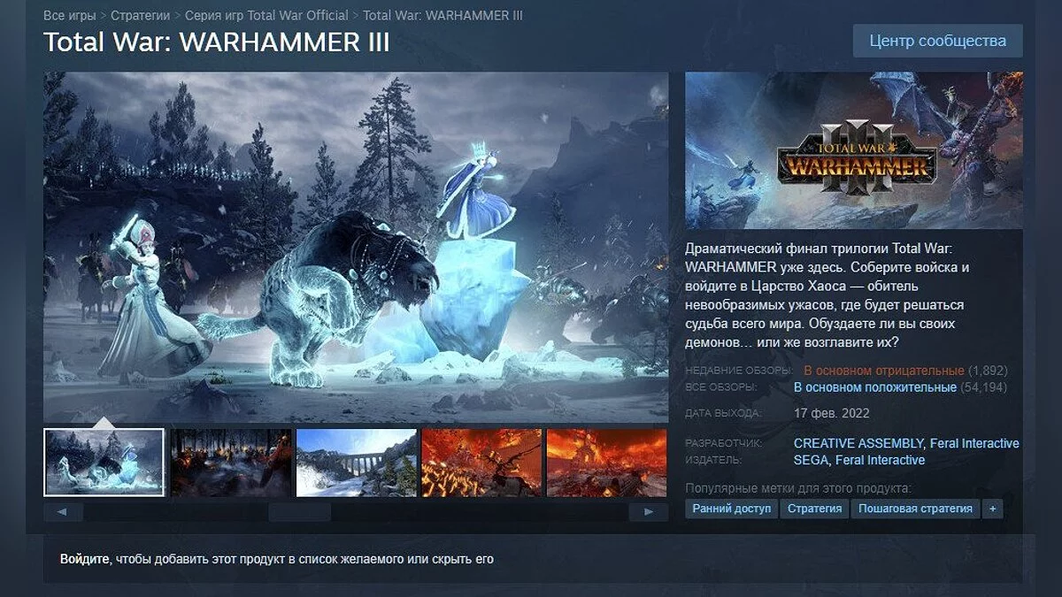 Не так давно студия Creative Assembly угодила в новый скандал. В начале августа разработчики анонсировали дополнение Shadows of Change для Total War: Warhammer 3, которое сразу же вызвало народные волнения. Причиной стал неоправданно дорогой ценник: за 3 лордов и 11 юнитов авторы просят $25 (2350 рублей). После этого недавние обзоры основной игры скатились до «в основном отрицательных».