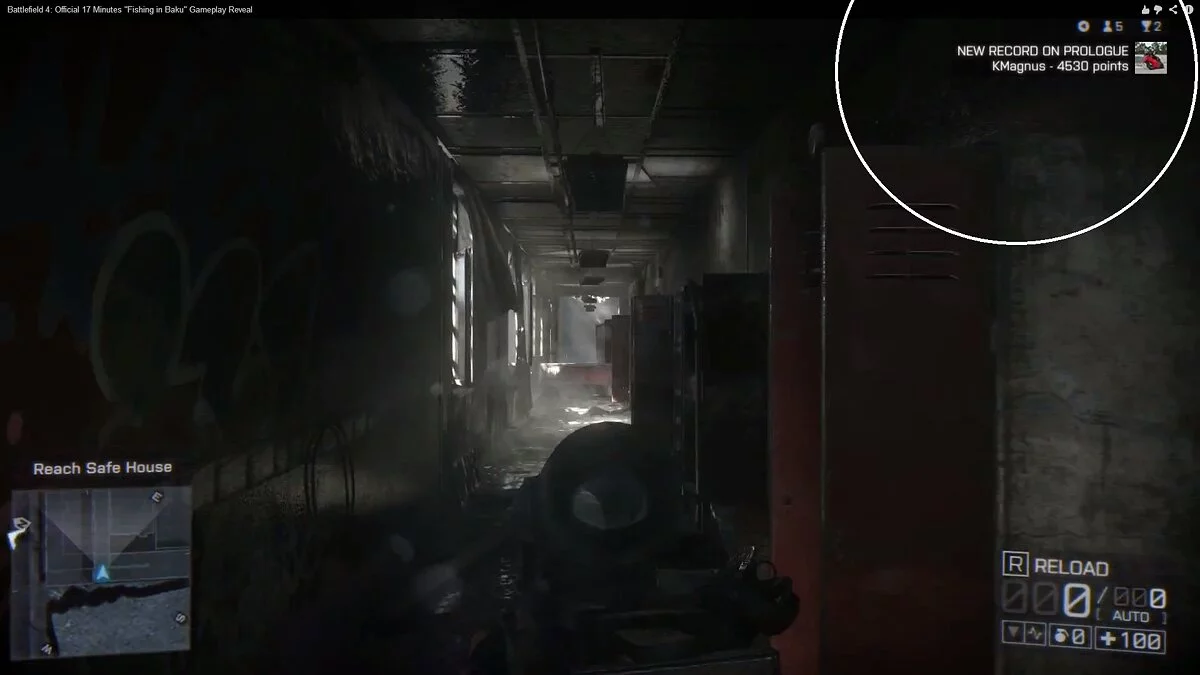 Примерно на отрезке 2:40 в правом верхнем углу экрана можно наблюдать всплывающее окно, информирующее нас о том, что другому игроку удалось установить новый рекорд при прохождении пролога Battlefield 4: