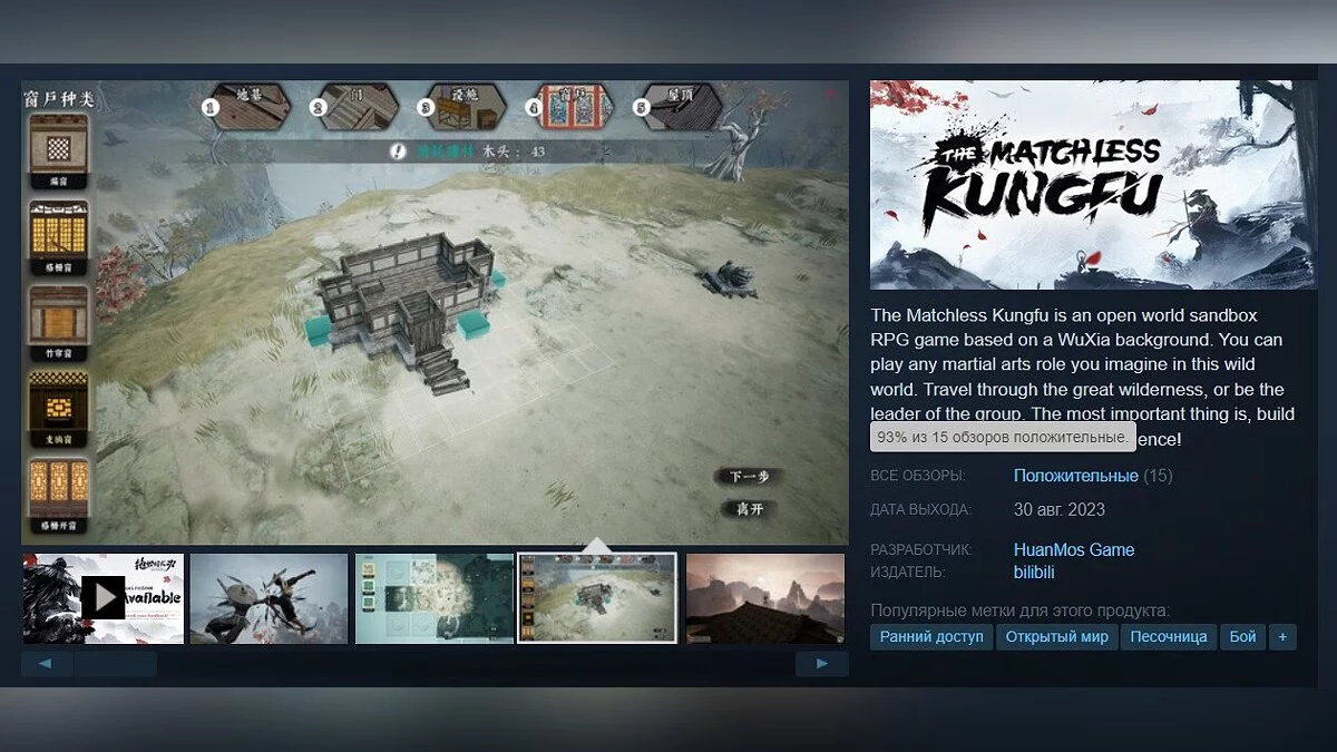 Разработчики из студии HuanMos Game выпустили в раннем доступе Steam ролевую игру с открытым миром и элементами песочницы под названием The Matchless KungFu. Как и следует из названия, проект посвящен теме восточных боевых искусств.