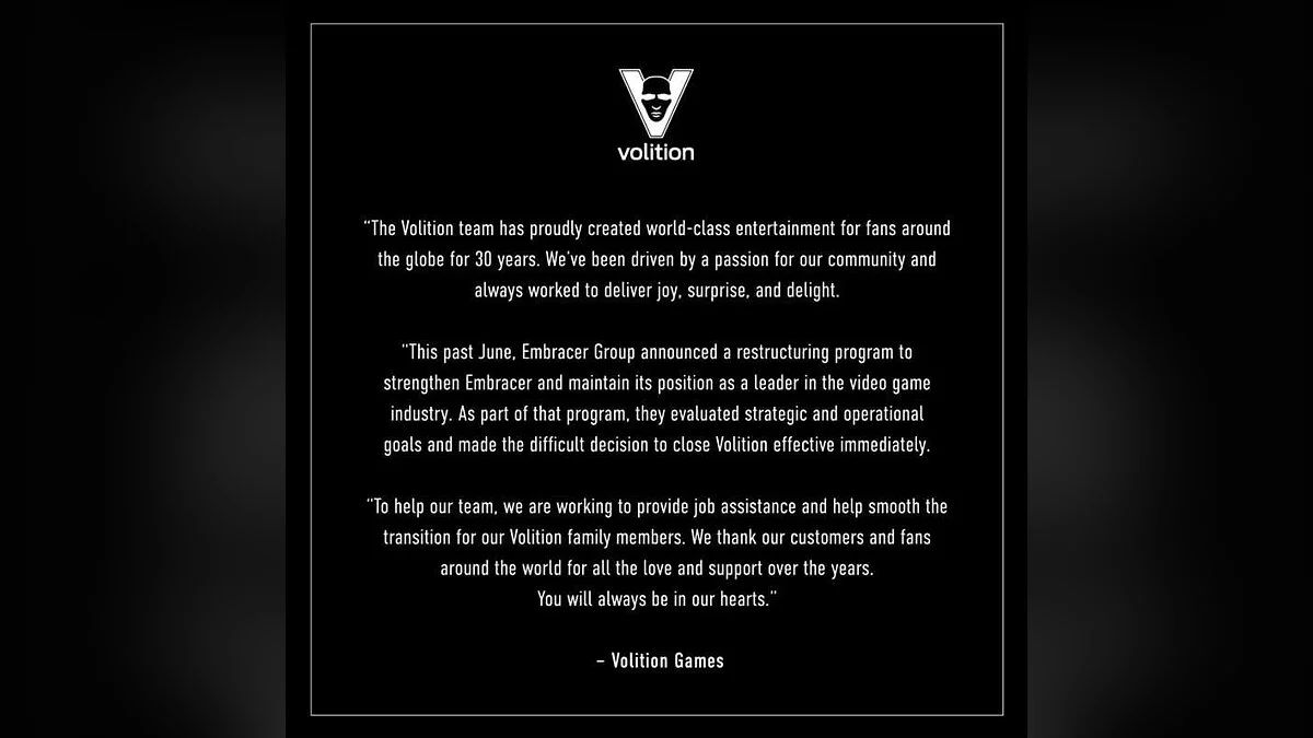 По словам руководителей студии, Volition решили закрыть в рамках масштабной реструктуризации, о которой Embracer Group объявила в июне. Чтобы сократить расходы, компания начала закрывать внутренние студии и отменять некоторые неанонсированные проекты.