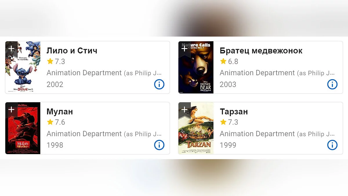 Филип участвовал в создании мультфильмов «Братец медвежонок», «Мулан», «Тарзан» и «Лило и Стич». В частности, трудился над персонажами Фа Зу, Фа Ли, Кенай и Стич. Также он работал над мультсериалами «DC девчонки-супергерои», «Глюкотехники», «Команда Турбо» и «Шоу Кливленда».