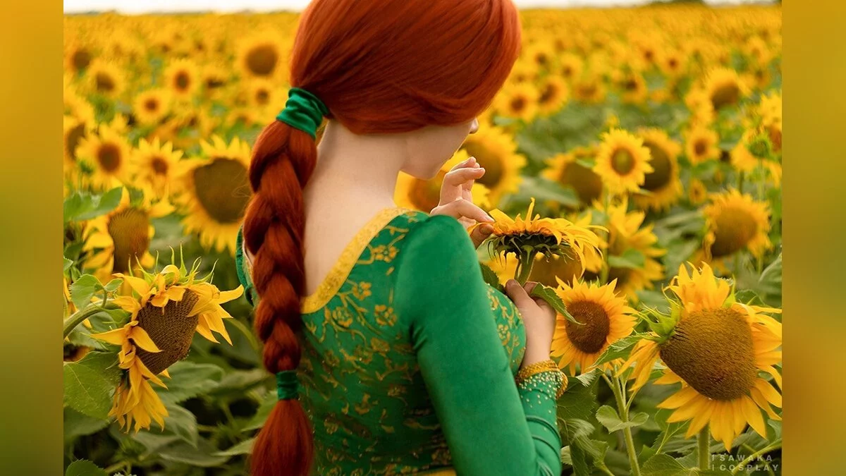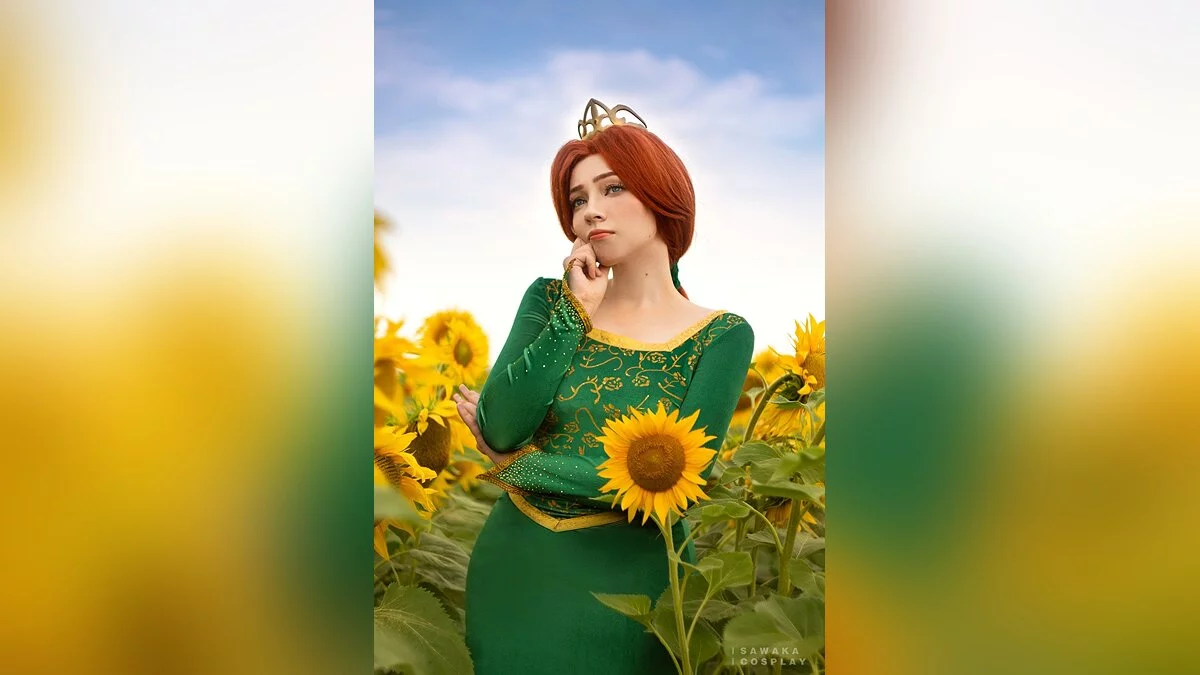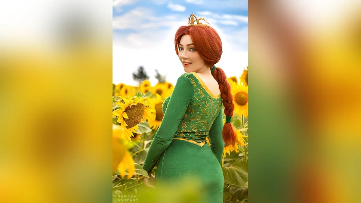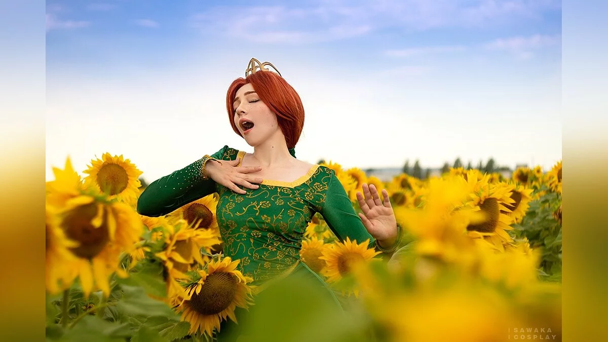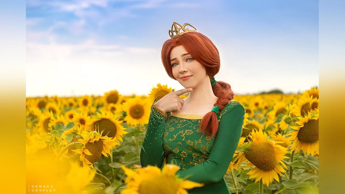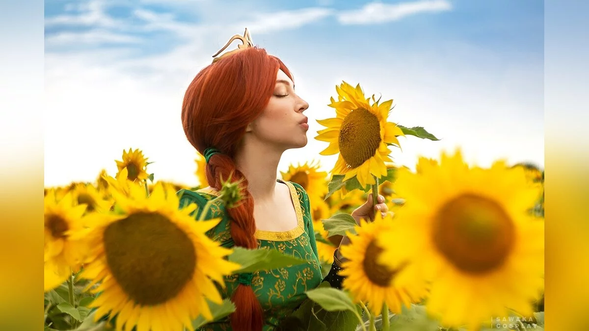 Прощаемся с летом правильно! Модель Екатерина «Sawaka» Савушкина сделала яркий косплей на принцессу Фиону из первого «Шрека». Место для фотосета — подсолнуховое поле, где героиня ждет своего зеленокожего огра.