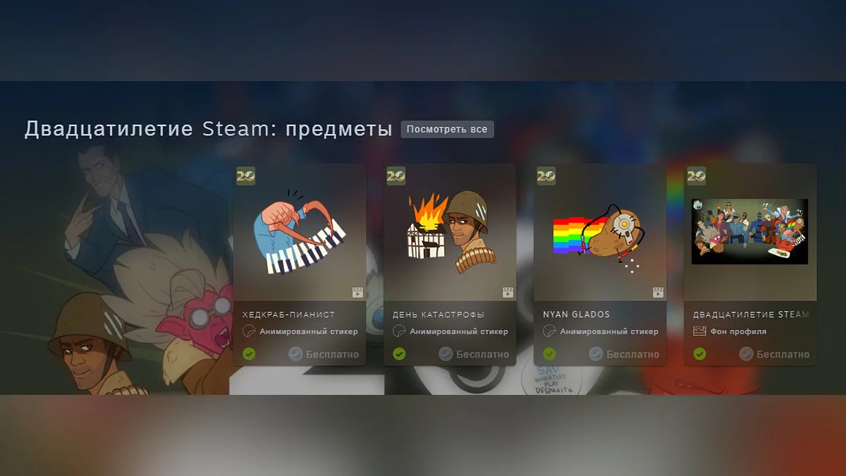 В чеcть 20-летия Steam началась распродажа культовых игр. Valve бесплатно раздаёт уникальные фоны, стикеры и аватар