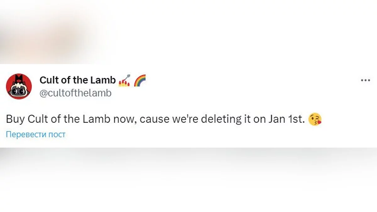 А вот как на эту новость отреагировали авторы Cult of the Lamb: «Покупайте игру прямо сейчас, поскольку 1 января мы удалим ее».