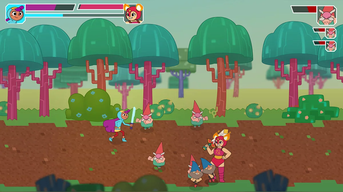 Glitchers: Hack 'em Up — двухмерный битемап с мультяшной графикой, причудливыми персонажами и боссами. За прохождение уровней выдаётся валюта, которую можно тратить на различные усиления. По стилистике игра отдалённо напоминает мультик «Время приключений». Страница в Steam.