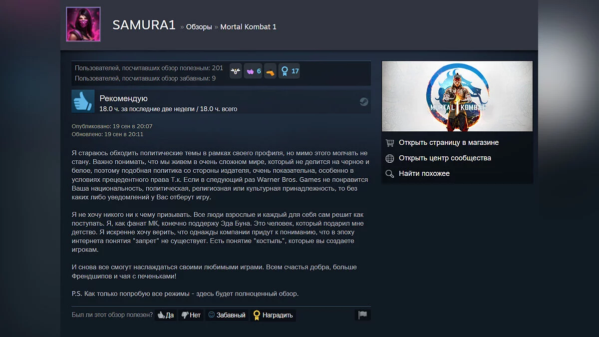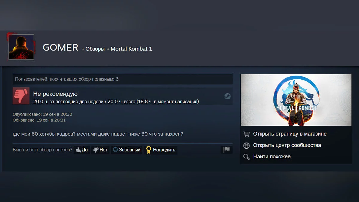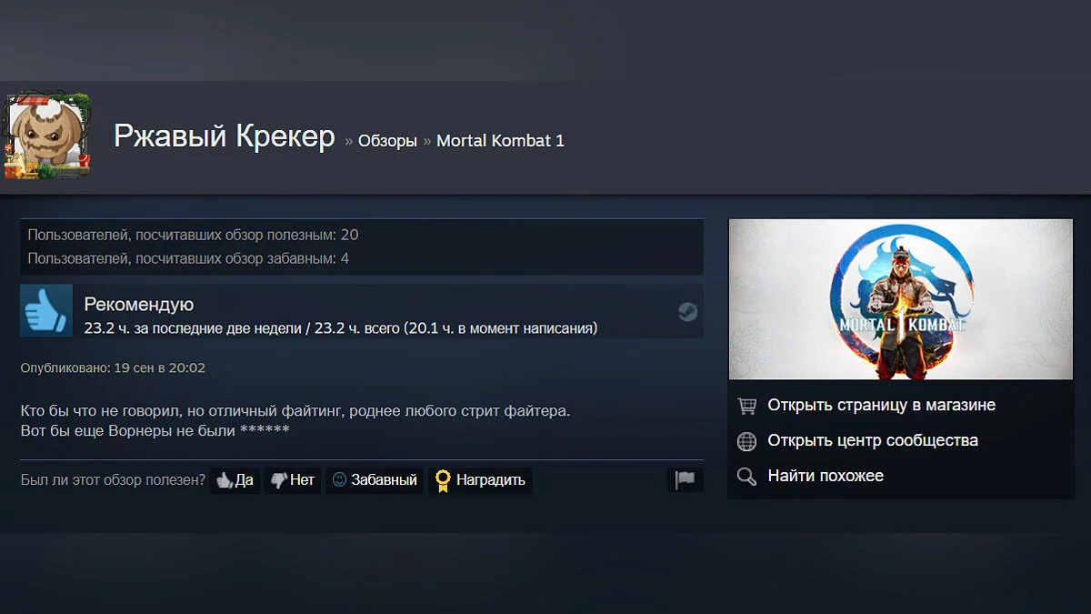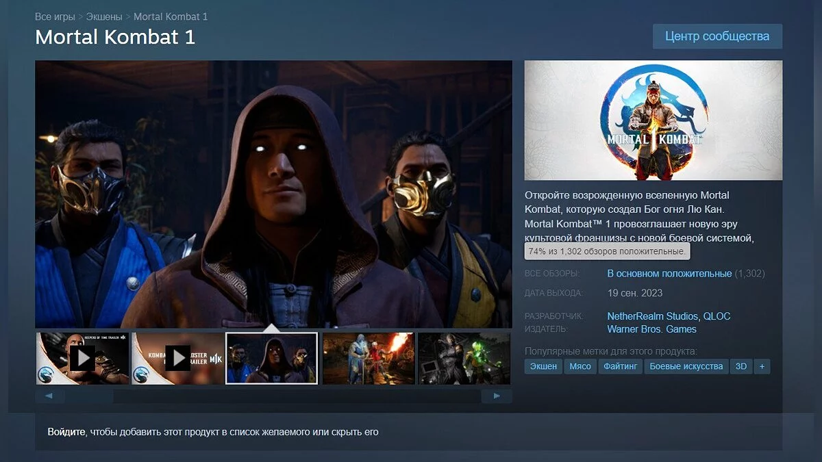 Спустя несколько дней раннего доступа состоялся полноценный релиз Mortal Kombat 1, которая уже успела получить первые отзывы от геймеров в Steam. На момент написания новости рейтинг проекта составляет 74%.
