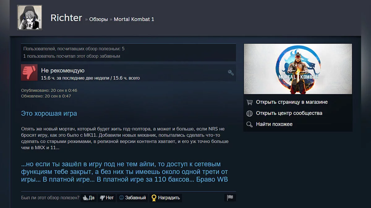 Состоялся релиз Mortal Kombat 1. И вот как игру оценили геймеры в Steam