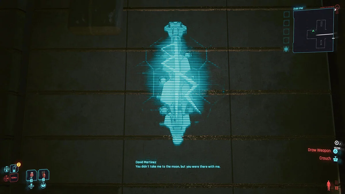 Персонажей — вернее, их останки — можно обнаружить в колумбарии Найт-Сити. На стенах появилось несколько новых голограмм, за которыми находится прах героев.