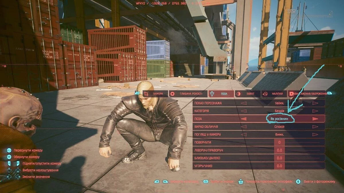 Членов банды «Мусорщики» герой называет «руснёй». Фамилию «Хохлова» заменили на «Москаль», «хороший человек» стал «хорошим русским», а «граница между Польшей и СССР» превратилась в «границу между Польшей и Украиной». В Найт-сити появилась украинская кухня. Позу в фоторежиме, где Ви садится на корточки, назвали «Как россиянин». А ещё в одной из сцен героя посылают следом за кораблём. Студия UNLOCTEAM отметила, что все термины были согласованы с разработчиками.