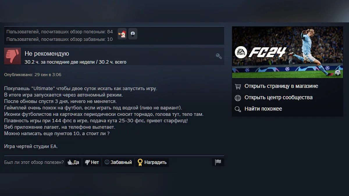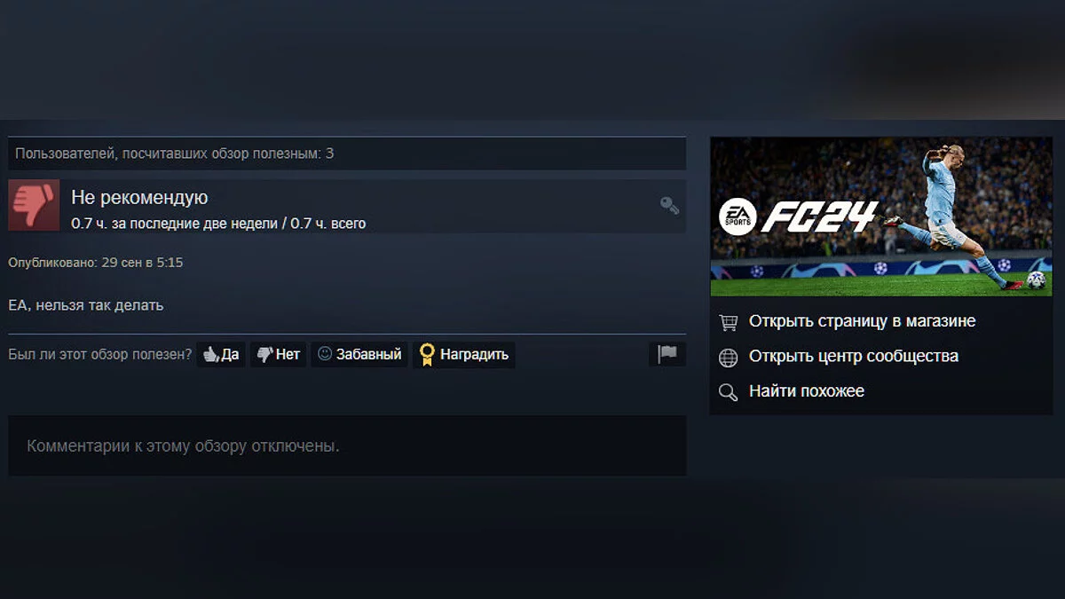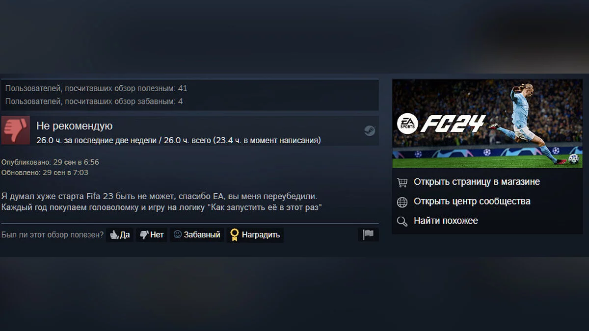 «EA, нельзя так делать»: пользователи Steam разругали вышедшую EA Sports FC 24