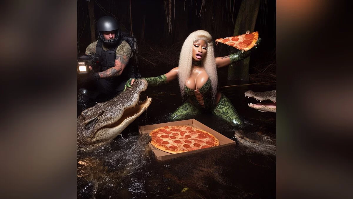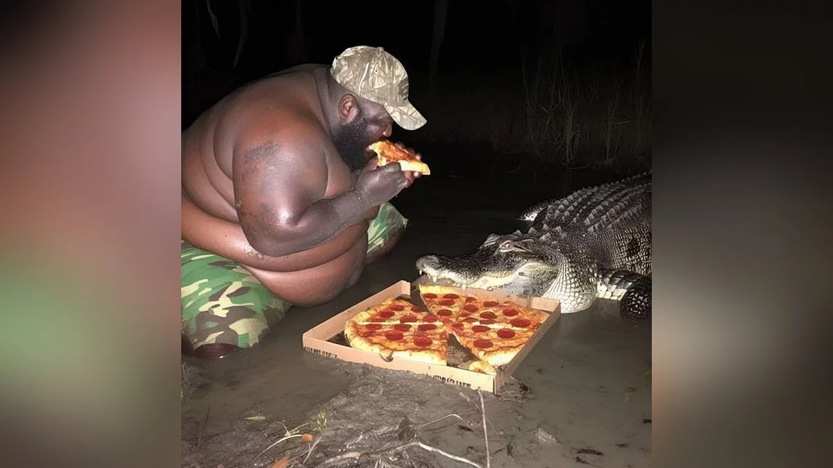 Недавно в сети завирусилось изображение с темнокожим мужчиной, который дерется с аллигатором из-за того, что тот украл его пиццу. Некоторые пользователи подумали, что это настоящее фото, но, как оказалось, картинка была сгенерирована искусственным интеллектом.