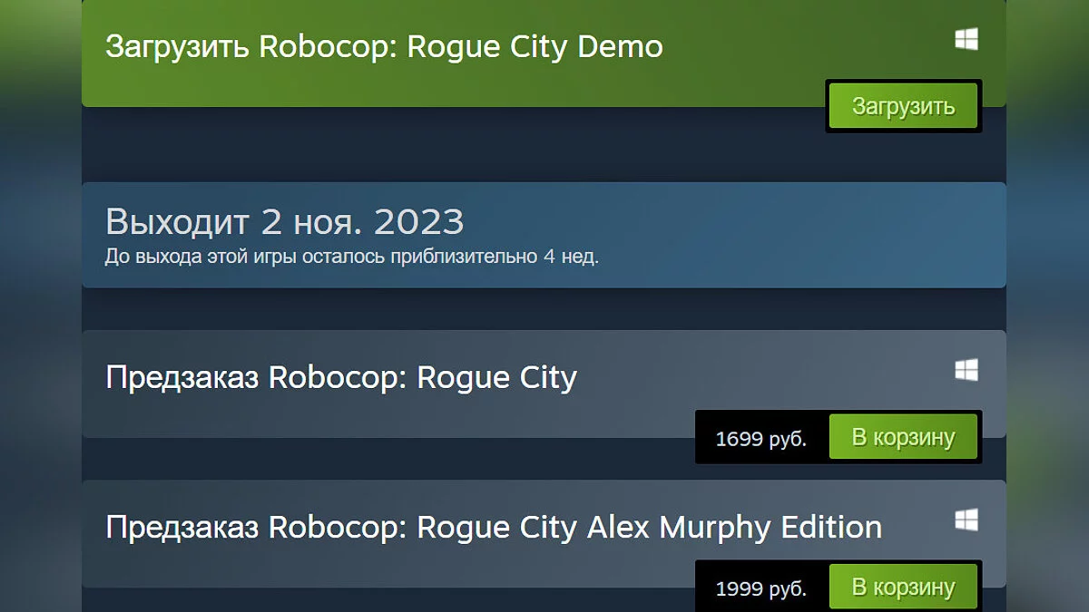Стала известна цена RoboCop: Rogue City в российском Steam -