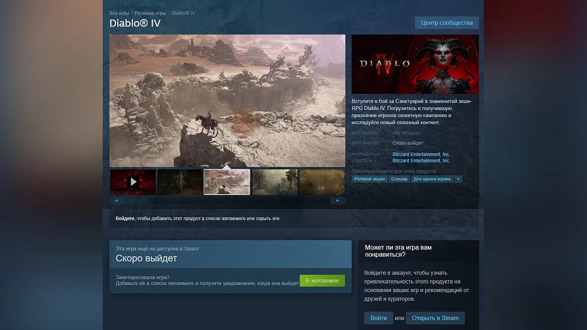 Diablo 4 станет второй игрой Blizzard Entertainment, которая выйдет в Steam. Релиз состоится 17 октября, одновременно с началом второго сезона. Для запуска потребуется аккаунт Battle.net.