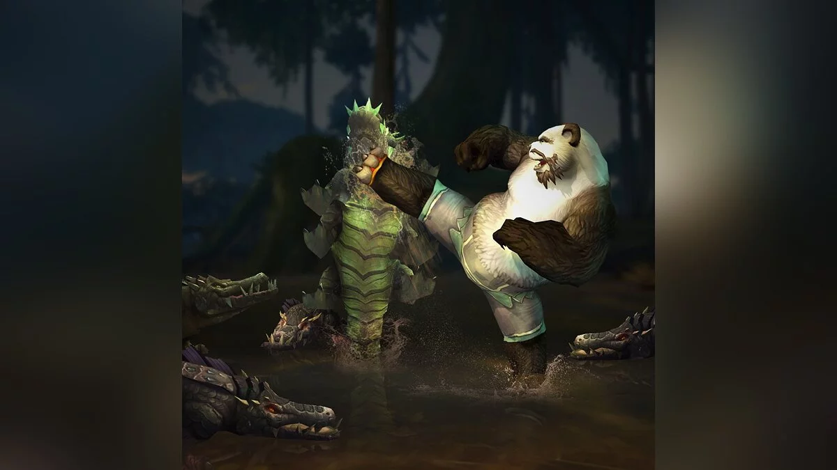 На изображении роли темнокожего мужчины и аллигатора исполняют существа из World of Warcraft.