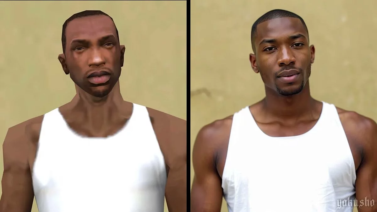 Ютубер Yakusho решил при помощи нейросети превратить персонажей GTA: San Andreas в живых людей. Примерно так могли выглядеть герои культовой игры, если бы по ней сняли фильм.