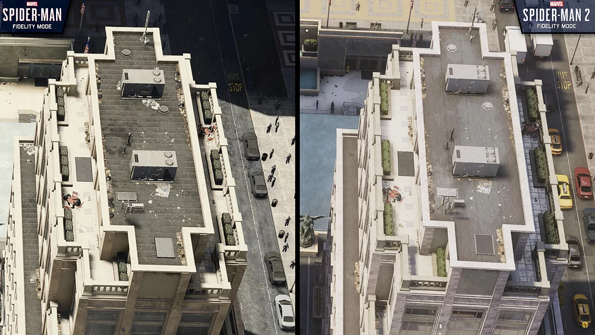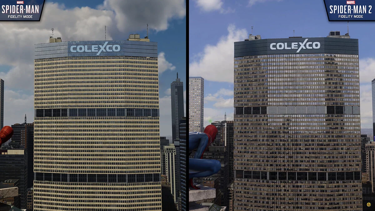 Вчера ютубер Nick930 выпустил технический ролик, где сравнил графику Marvel's Spider-Man 2 и ремастера оригинальной игры 2018 года. Во время съемок блогер заметил, что в некоторых местах первая часть выглядит лучше, и предположил, что разработчикам пришлось намеренно ухудшить визуальную часть.