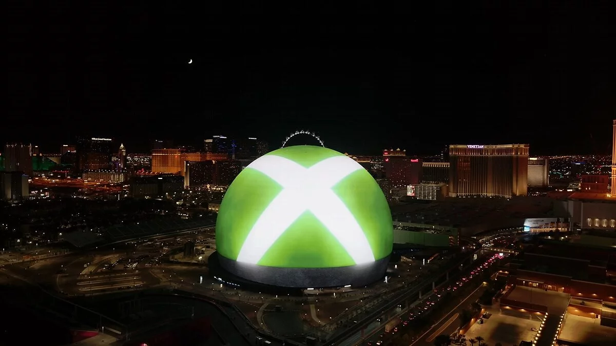 Сферическое здание MSG Sphere в Лас-Вегасе, состоящее из множества LED-панелей (образуют самый большой в мире светодиодный экран), превратили в логотип Xbox. Недавно Microsoft опубликовала видео, на котором показала, как это выглядит со стороны.