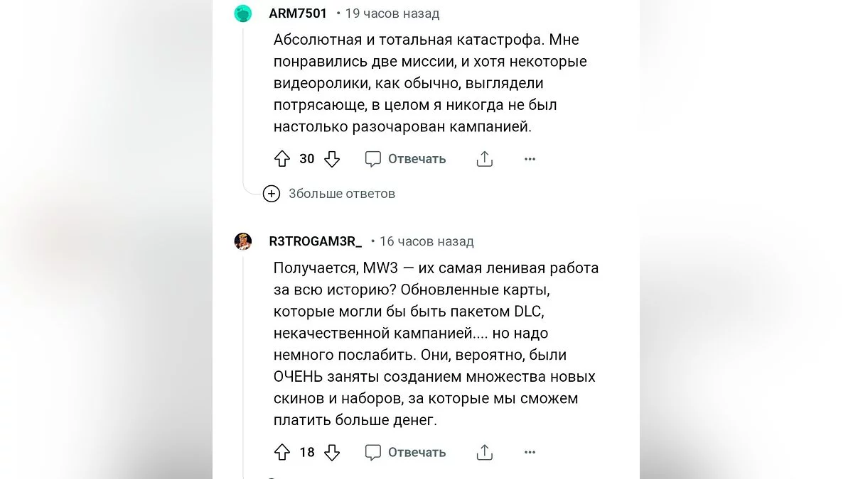 2 ноября все, кто предзаказал Call of Duty: Modern Warfare 3, получили доступ к сюжетной кампании шутера. Прошедшие её остались недовольны — геймеры начали массово критиковать проект.