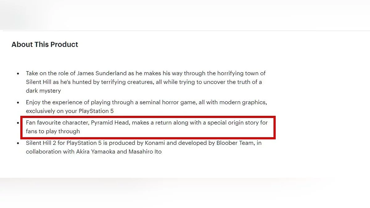 Судя по описанию на странице игры, Bloober Team намерена расширить историю нескольких персонажей. Как минимум это коснется Пирамидоголового — культовому противнику придумали «особую историю происхождения».