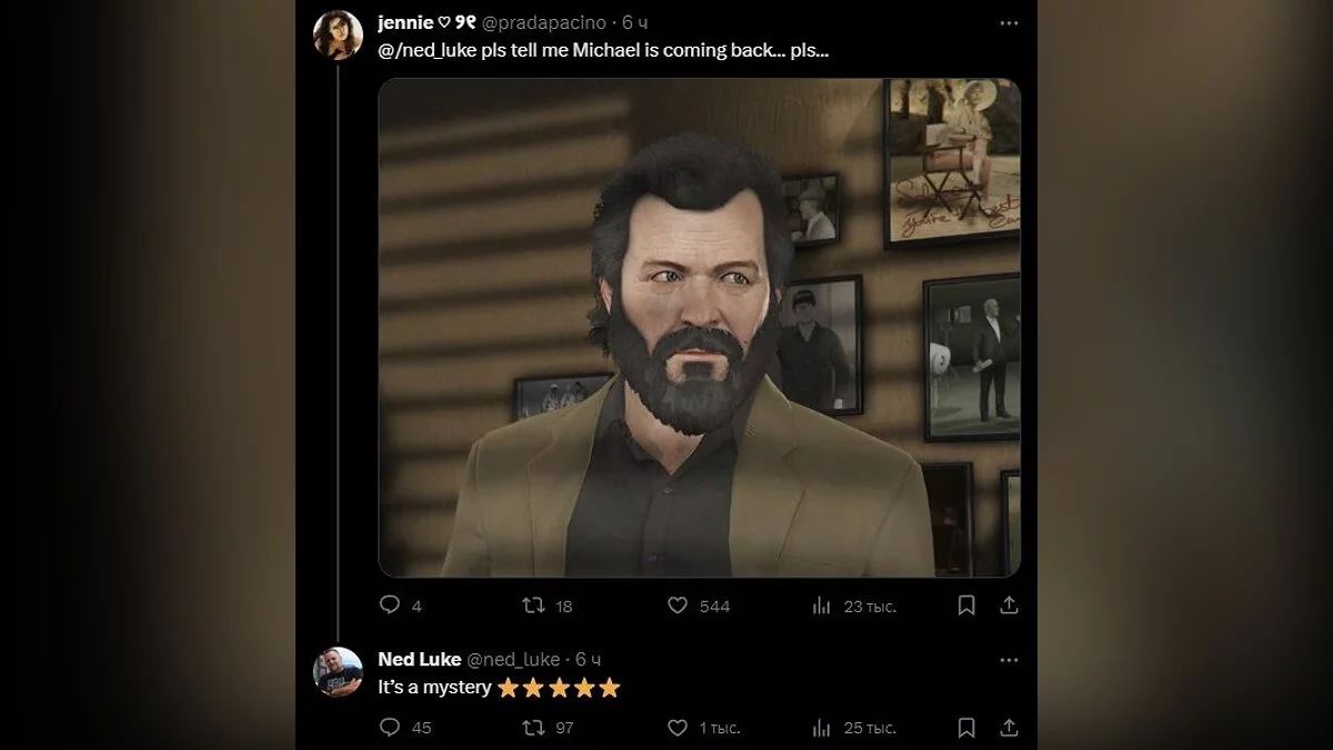 Одна из фанаток уже обратилась к Неду Люку (Ned Luke), сыгравшему Майкла де Санту. Девушка спросила, появится ли его герой в новой игре, на что тот ответил: «Это загадка