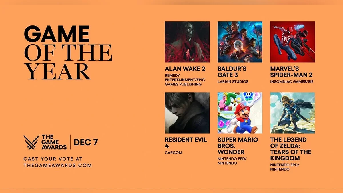 Организаторы ежегодной премии The Game Awards раскрыли список номинантов на звание лучшей игры 2023 года. В этот раз за главную награду поборются шесть проектов: Alan Wake 2, Baldur's Gate 3, Marvel's Spider-Man 2, ремейк Resident Evil 4, Super Mario Bros. Wonder и The Legend of Zelda: Tears of the Kingdom. Проголосовать за одну из игр можно на официальном сайте премии.