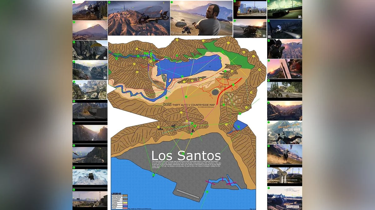 Карта, по заявлению владельцев, отображает местоположение Лос-Сантоса по отношению к остальной части мира игры. Так, например, водопад и мосты, находящиеся в левом верхнем углу карты, на самом деле могут располагаться гораздо ближе к городу, тогда как его собственные границы могут быть намного меньше.
