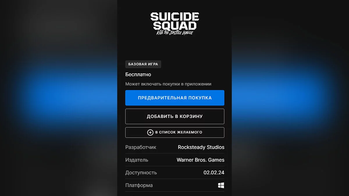 Из-за бага в магазине Epic Games Store появилась возможность бесплатно забрать в сбою библиотеку Suicide Squad: Kill The Justice League. Предполагается, что такая ошибка произошла только в России и Беларуси, где игра не будет продаваться. Возможно, её отберут после исправления бага.
