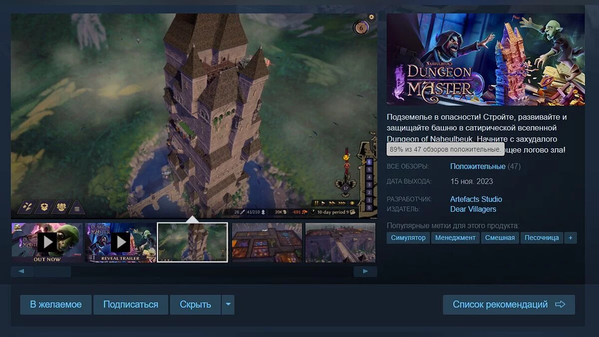 Компания-издатель Dear Villagers и студия-разработчик Artefacts выпустили на PC симулятор логова зла под названием Naheulbeuk's Dungeon Master. Проект уже получил первые отзывы от геймеров. Сейчас рейтинг игры составляет 89%.
