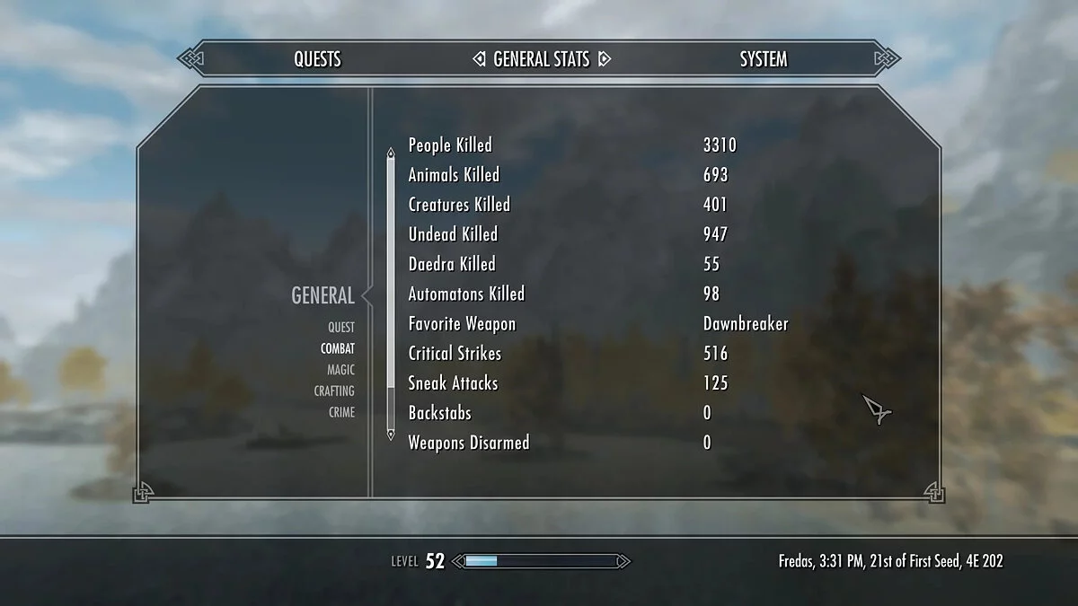 Геймер заявил, что убил всех живых существ в Skyrim, и поделился подробной статистикой