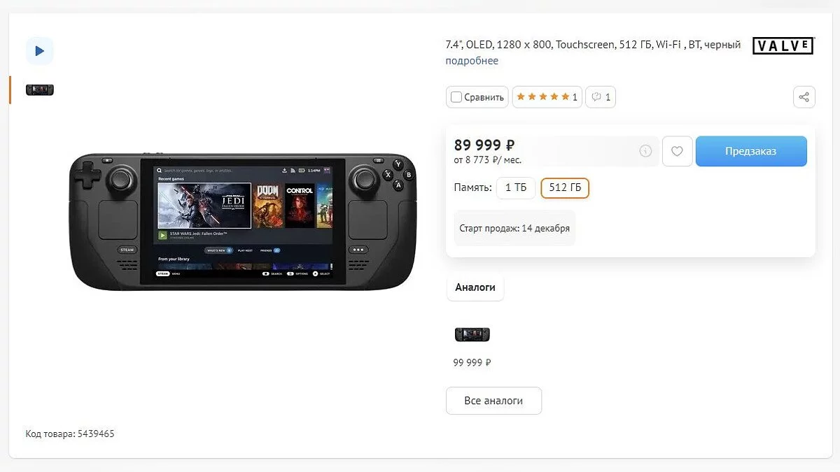 Портативный ПК обойдется в 90 тысяч рублей за версию с 512 Гб внутренней памяти. Также есть вариант с 1 Тб памяти, но он стоит 100 тысяч рублей. Напомним, что рекомендованная стоимость Steam Deck составляет $549 (48 500 рублей) и $649 (57 500 рублей) соответственно.