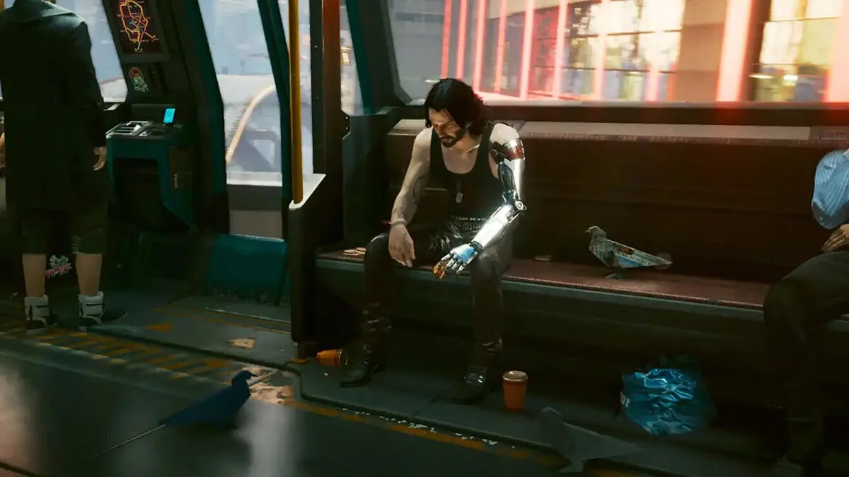 Мем можно увидеть в метро. Когда Ви сядет в вагон, напротив него появится Джонни Сильверхенд. Герой будет сидеть в знакомой позе в компании бумажных птичек и недоеденного сэндвича.