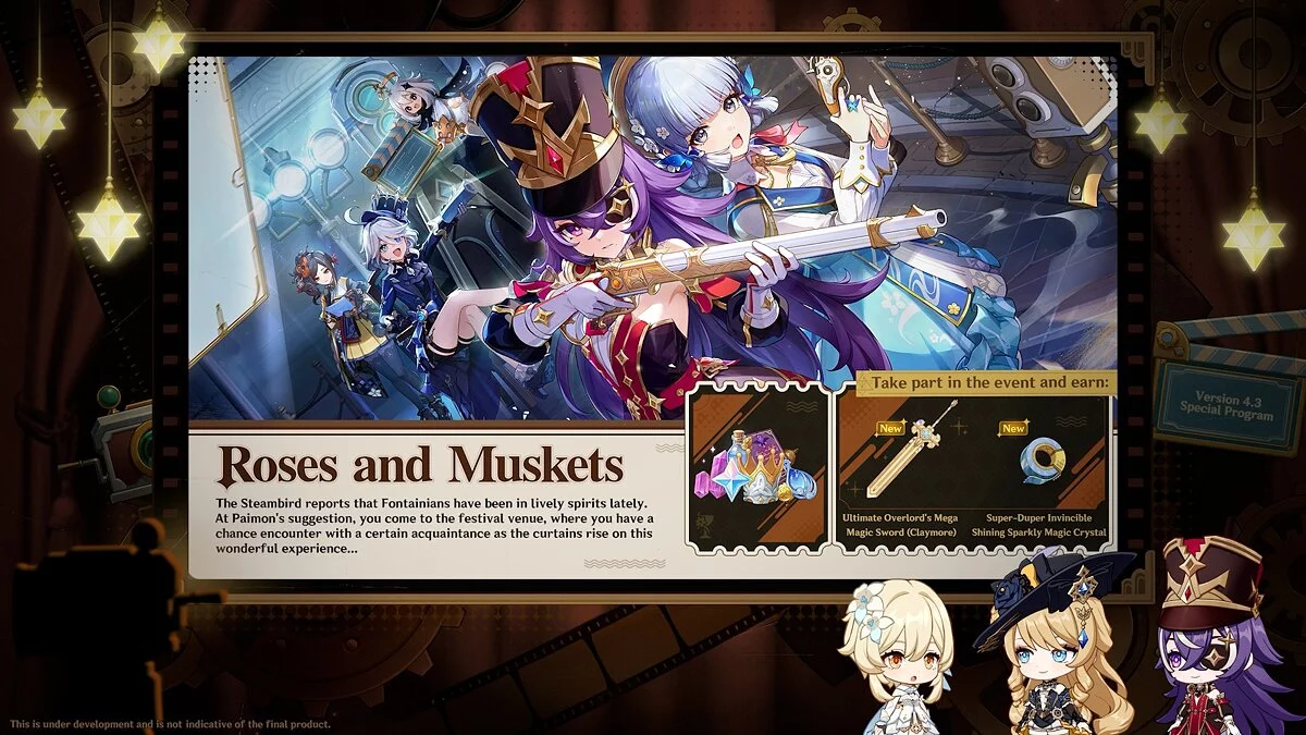 Компания HoYoverse провела презентацию обновления 4.3 для Genshin Impact, получившего название «Розы и мушкеты». Патч выйдет 20 декабря на PC, PlayStation 4, PlayStation 5, Android и iOS.