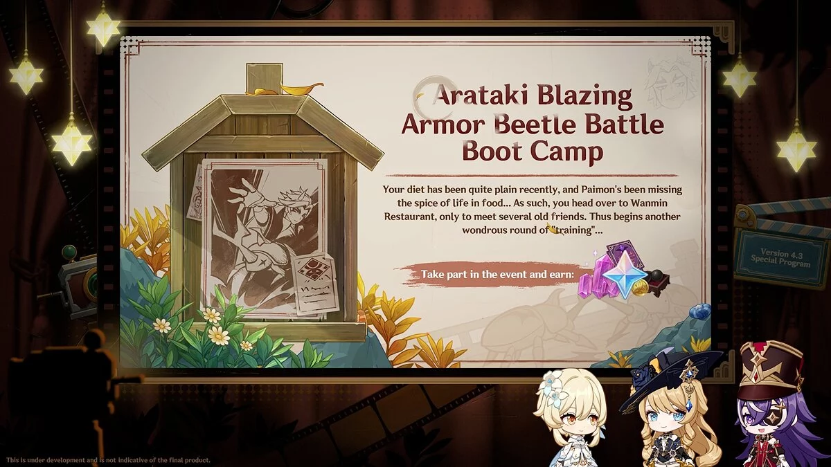 Предстоящее обновление добавит в Genshin Impact двух новых играбельных героинь — пятизвёздочную гео-двуручницу Навию и четырёхзвёздочную пиро-копейщицу Шеврез. Также игроков ждут задание легенд Навии, два набора артефактов, подводный мир в Чайнике Безмятежности и ивенты — «Подготовительный лагерь Аратаки для боевых жуков», «Затерянные богатства», «Танец непреклонной решимости» и сюжетное событие «Розы и мушкеты», где можно получить четырёхзвёздочный двуручный меч. Также патч введёт множество геймплейных улучшений.